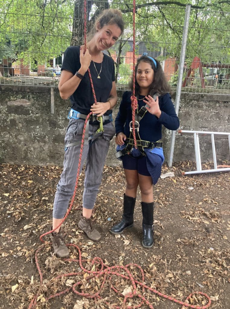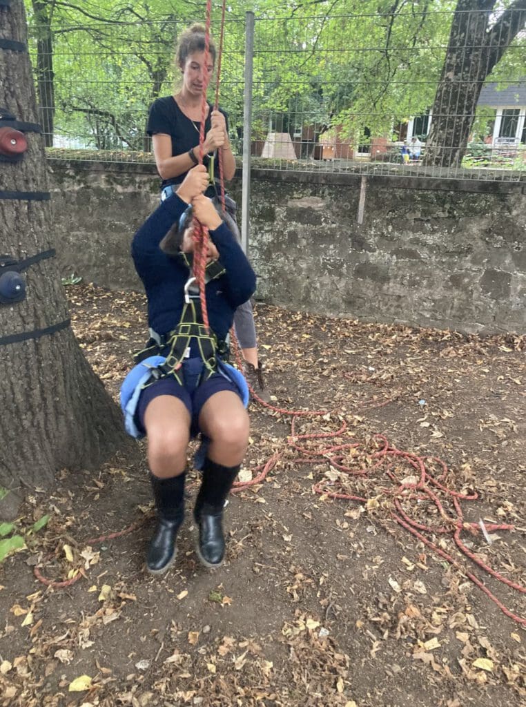 Nach und nach dürfen alle Kinder, die die Erlaubnis ihrer Eltern haben, mit Frau Scheidweiler klettern.