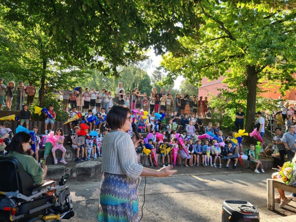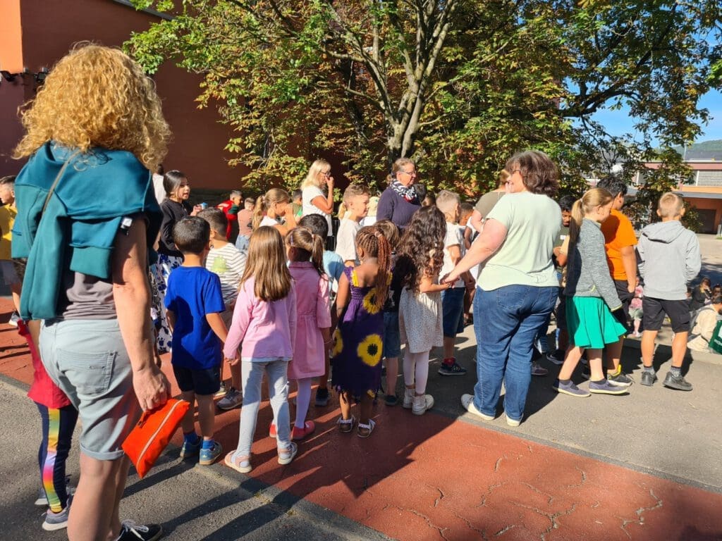 Nach der Ansprache unserer Schulleiterin Frau Lutz erfolgte bereits die Aufteilung auf die Klassen 1a, 1b und 1c. Die Patinnen und Paten der 2. Klassen führten sie unter Applaus durch ein langes Spalier der Schulgemeinschaft in ihre Klassen. Der Ankunft der Schulneulinge sehen alle immer mit besonderer Freude entgegen.