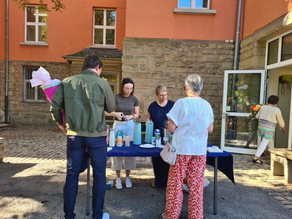 Während die Kinder ihre erste Unterrichtsstunde in ihren Klassen absolvierten, bot unser Elterncafé den Gästen die Möglichkeit zu verweilen und ins Gespräch zu kommen. Die Vorbereitung lag in den Händen von Frau Wagenbach, Frau Winter, Frau Schneider und Frau Schiffhauer.