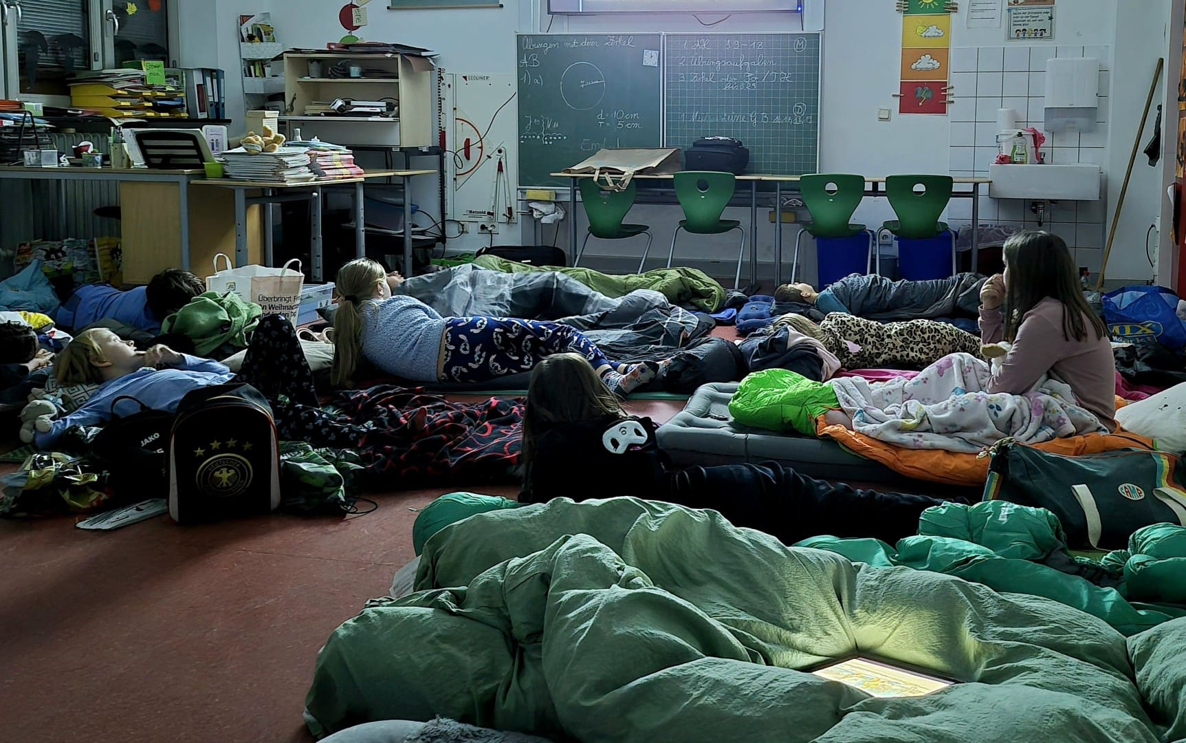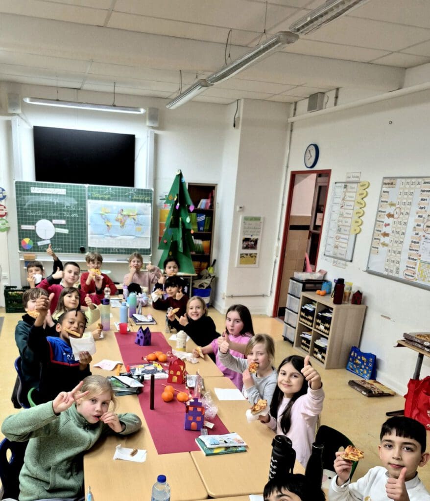 Gestern Abend trafen sich zuerst die Eltern und Kinder der Klasse 4b zur gemeinsamen Adventsfeier. Doch nur die Eltern gingen nach Hause. Die Kinder durften noch zur Lesenacht bleiben und machten es sich im Klassenraum der 4a gemütlich. Beim abschließenden Frühstück heute Morgen sah man nur zufriedene Gesichter!