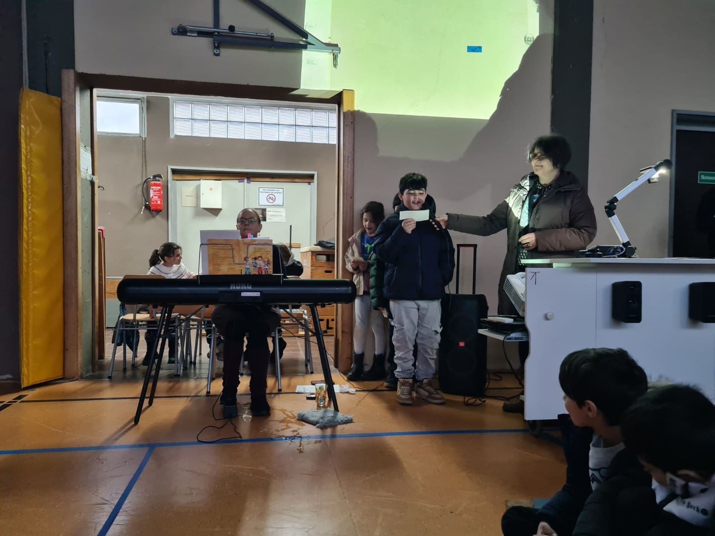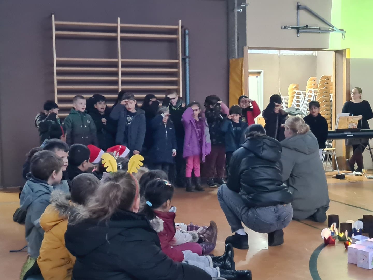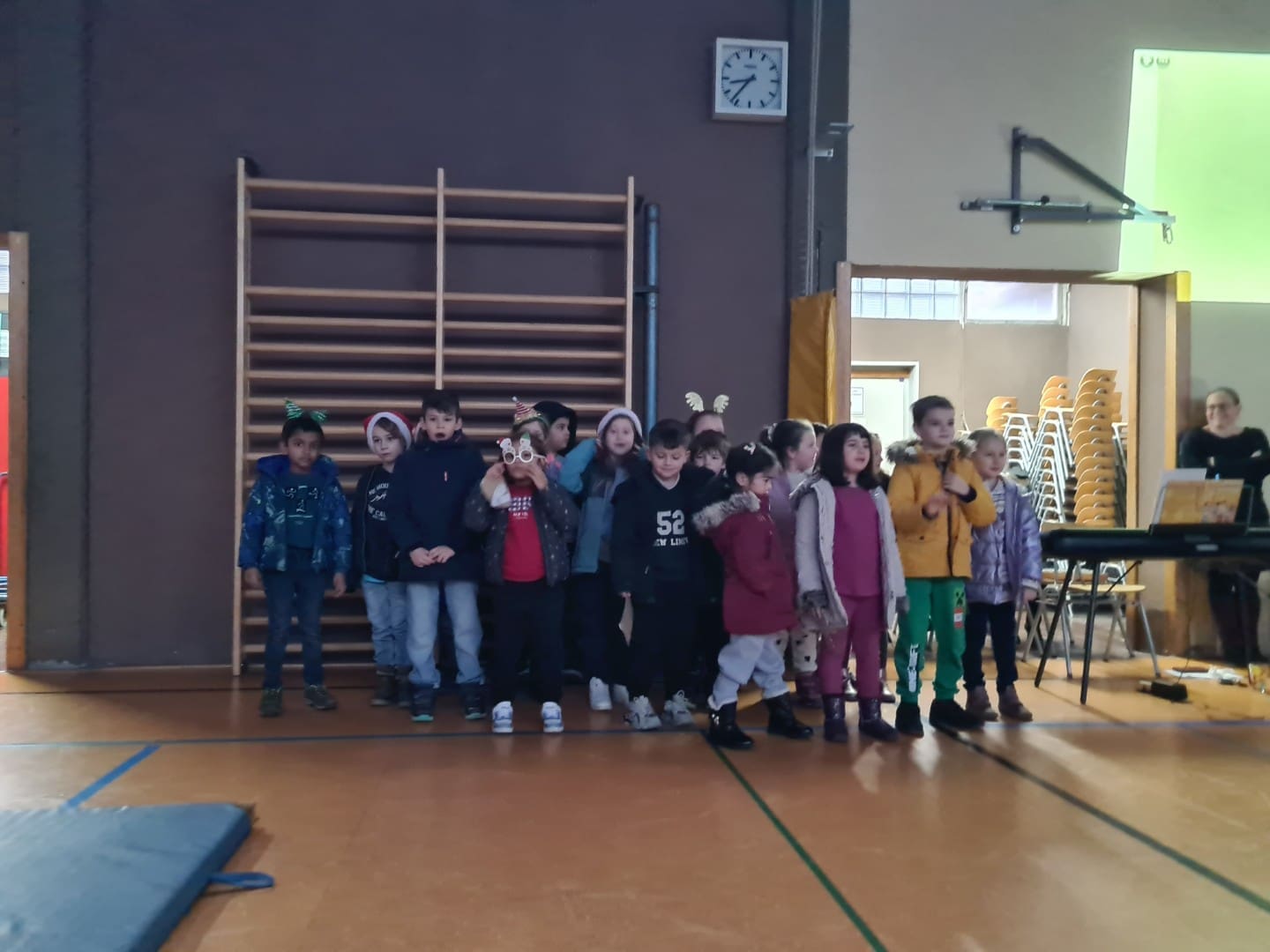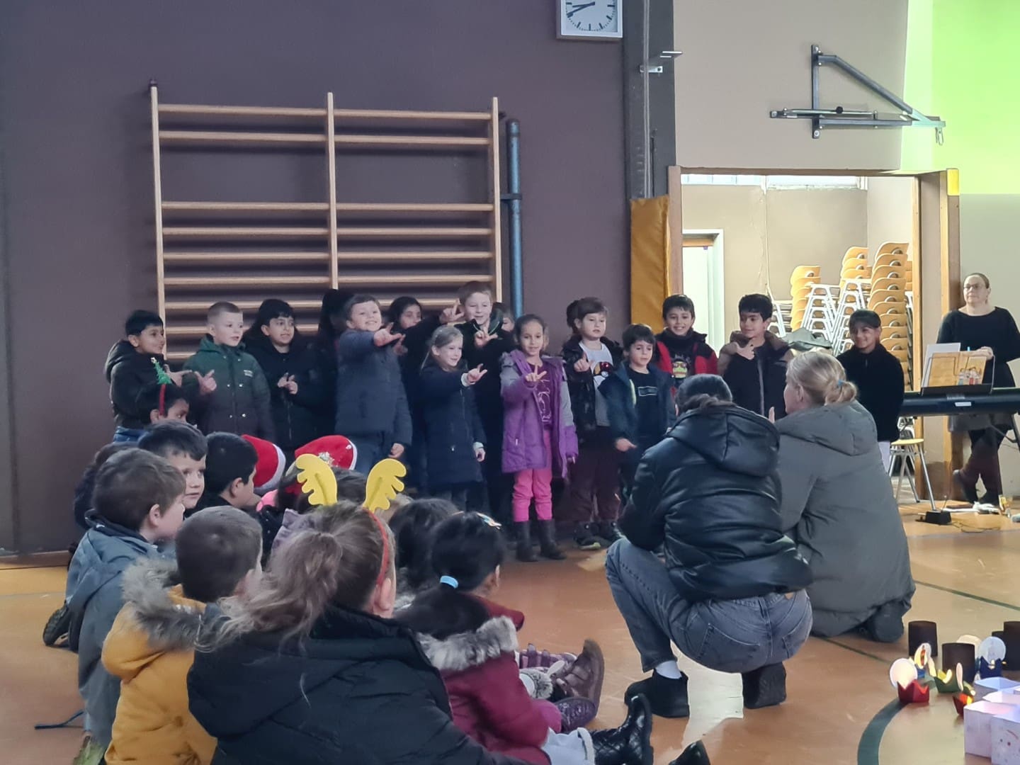 Zum Abschluss las uns Frau Lutz das Buch „Wem gehört das Weihnachtsdings?“ von Madlen Ottenschläger vor. Begleitet wurde sie dabei von 3 Kinder aus der 4a an den Xylophonen.