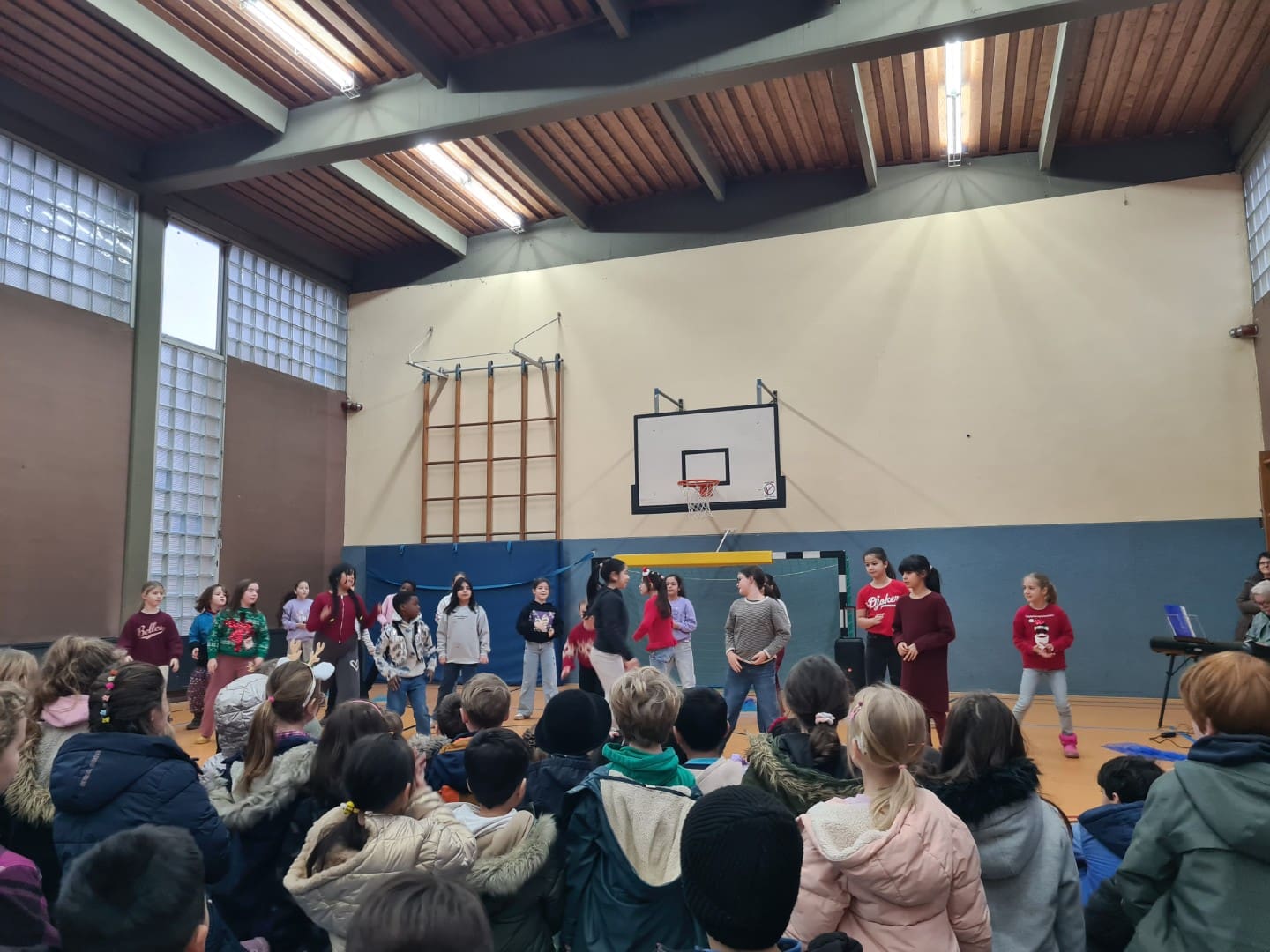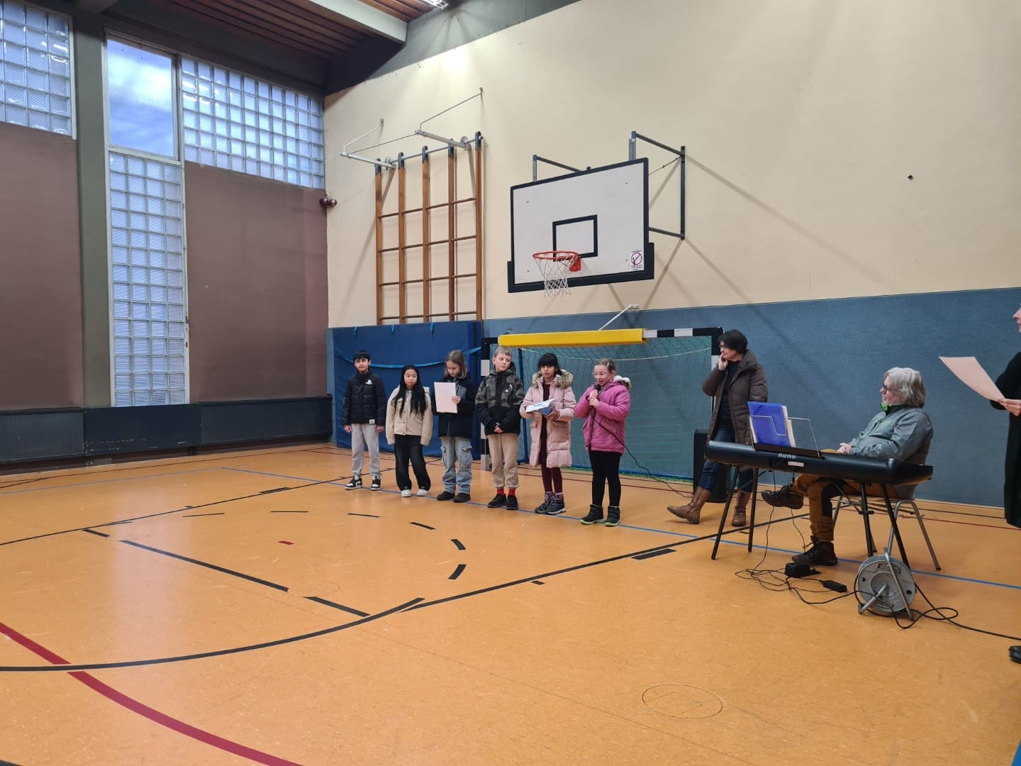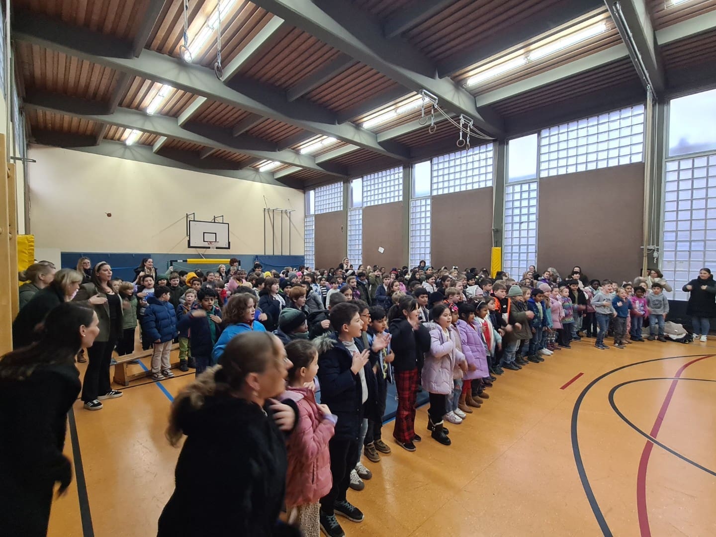 Am letzten Tag vor den Weihnachtsferien kam die Schulgemeinschaft zu einer Matthiaszeit in der Turnhalle zusammen.