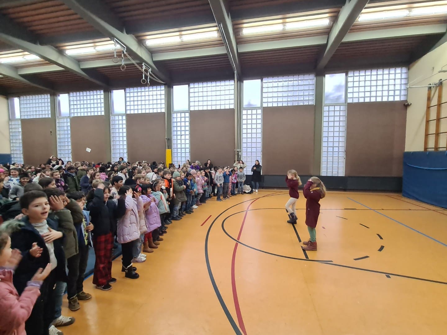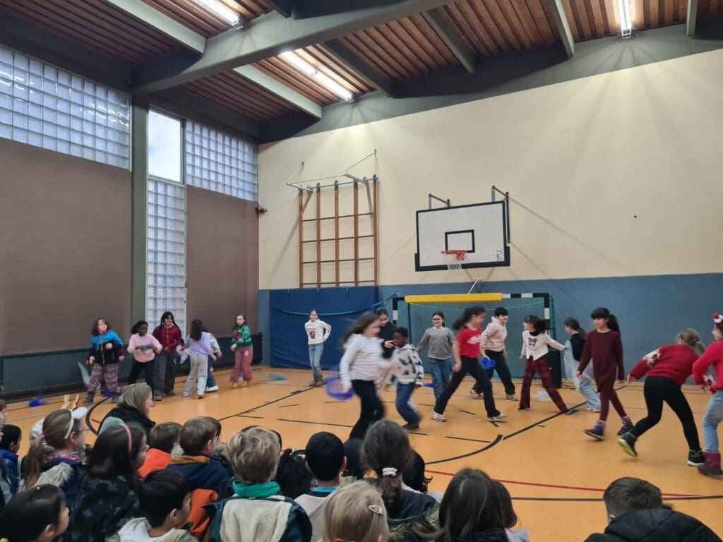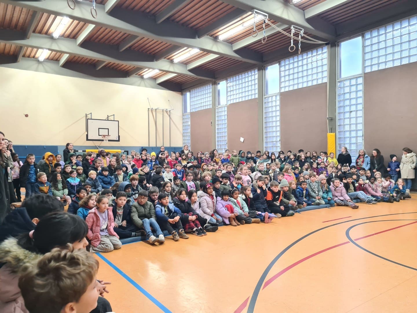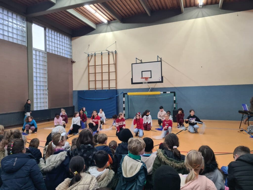 Am letzten Tag vor den Weihnachtsferien kam die Schulgemeinschaft zu einer Matthiaszeit in der Turnhalle zusammen.