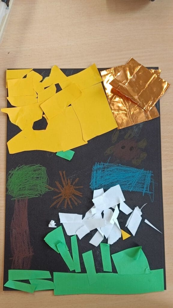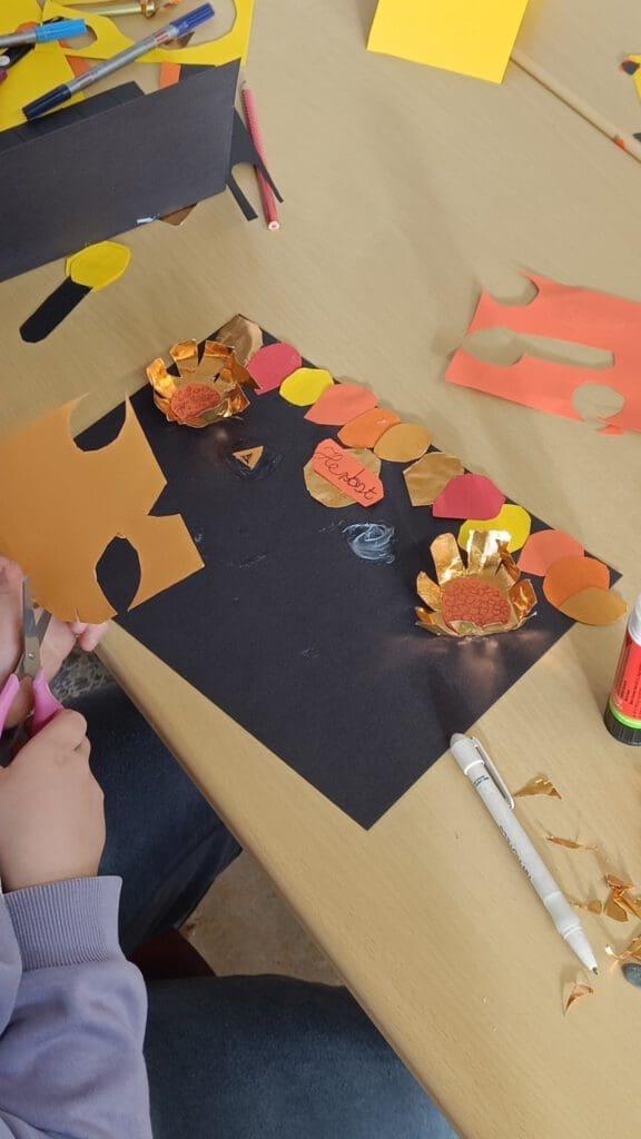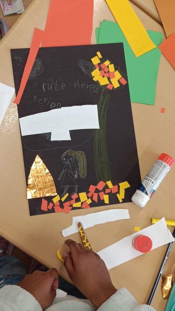 Im Bastelangebot entdecken die Kinder immer wieder neue kreative Projekte. Ob mit gesammelten Naturmaterialien, bei gemeinsamen Malaktionen oder beim freien Collagieren zu wechselnden Themen – hier gibt es viel Raum zum Ausprobieren und Gestalten.