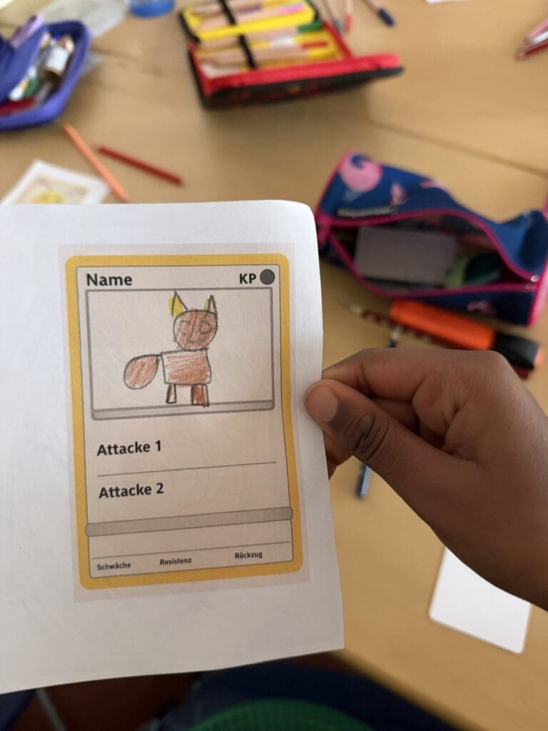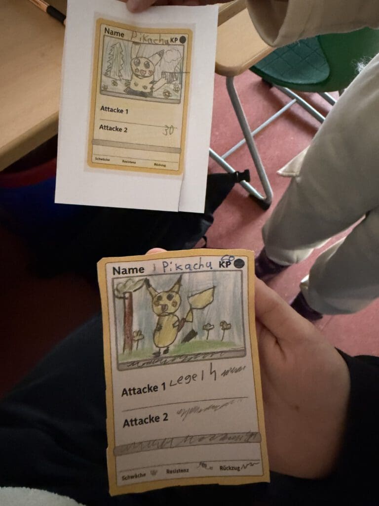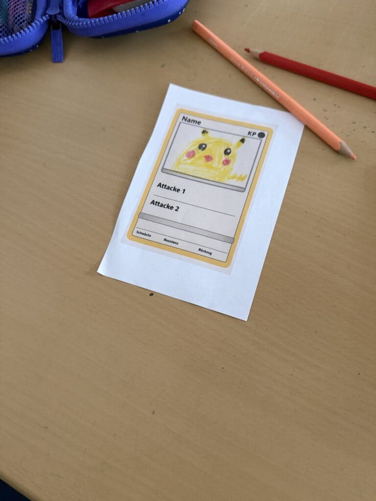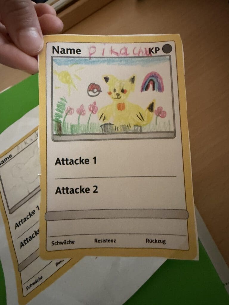 Im Rahmen unserer Ideenwerkstatt haben wir uns mit dem Herstellen eigener Pokémon-Karten beschäftigt. Hierzu haben sich die Kinder zunächst an einer Vorlage ausprobieren dürfen, bevor sie ihre eigene Karten gestaltet haben. Anlässlich des neuen Jahres haben die Kinder „Neujahr-Windfänger“ gebastelt. Diese sind nicht nur bunt gestaltet, sondern enthalten auch persönliche Wünsche für das neue Jahr.