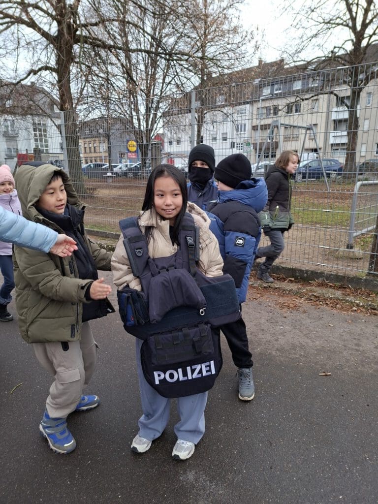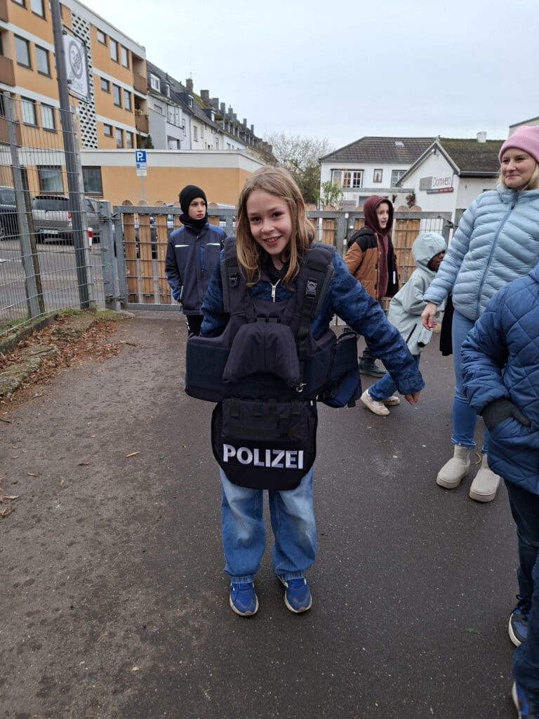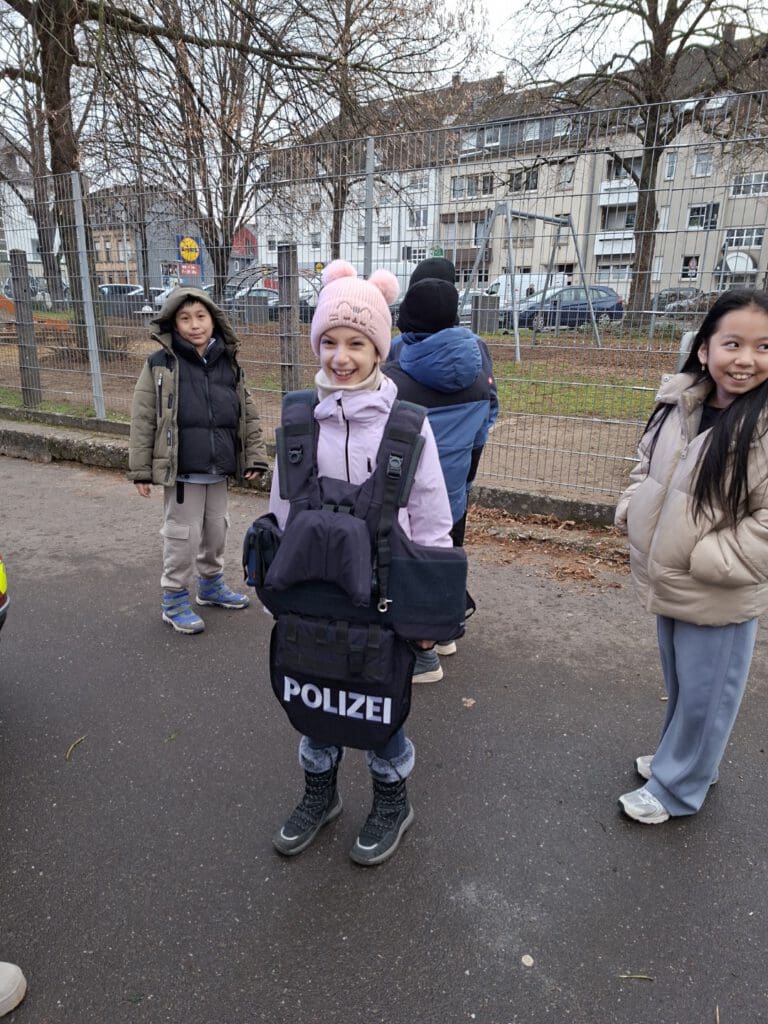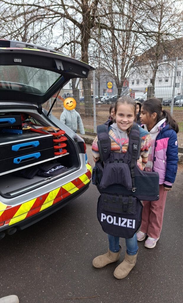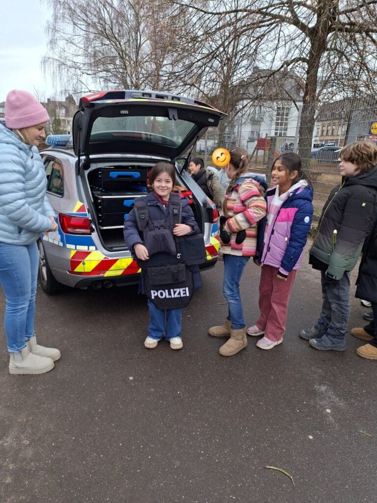 Dabei ging es unter anderem darum, falsche Polizeibeamte zu erkennen oder richtig zu reagieren, wenn Fremde einen ansprechen. Außerdem redeten wir darüber, was zu tun ist, wenn man allein zu Hause ist und es klingelt. Auch der Umgang mit Smartphones, Apps, Internet und das Thema Mobbing wurden kindgerecht besprochen. Die Polizistinnen beantworteten geduldig viele Fragen und erklärten zudem die Bestandteile ihrer Polizeiuniform.