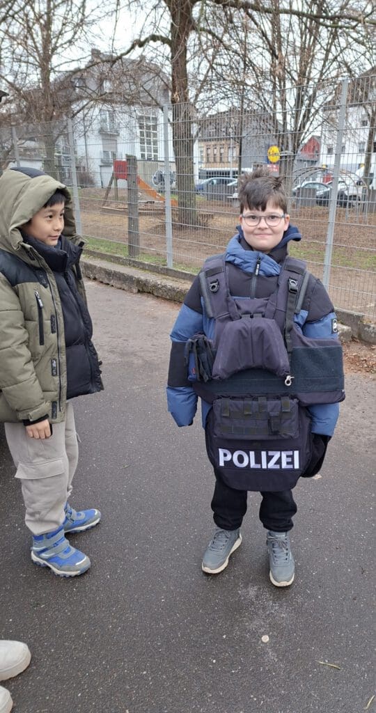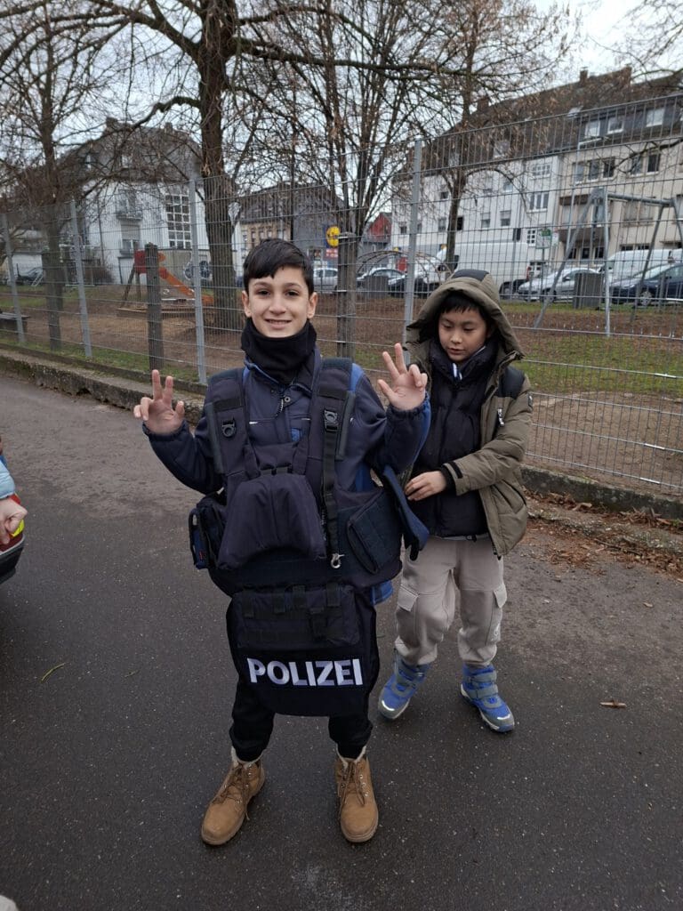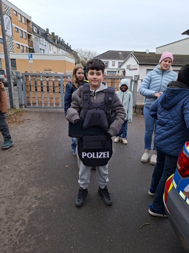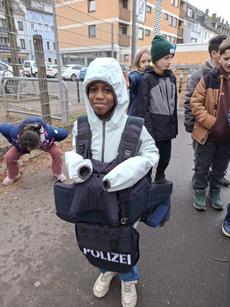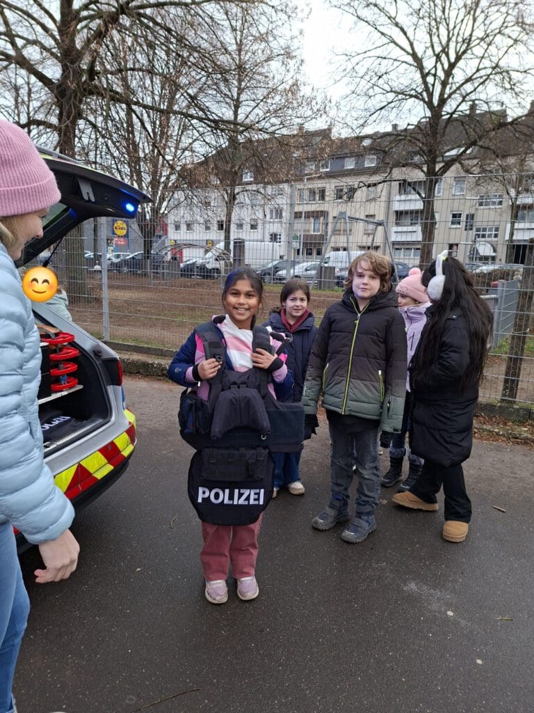 Dabei ging es unter anderem darum, falsche Polizeibeamte zu erkennen oder richtig zu reagieren, wenn Fremde einen ansprechen. Außerdem redeten wir darüber, was zu tun ist, wenn man allein zu Hause ist und es klingelt. Auch der Umgang mit Smartphones, Apps, Internet und das Thema Mobbing wurden kindgerecht besprochen. Die Polizistinnen beantworteten geduldig viele Fragen und erklärten zudem die Bestandteile ihrer Polizeiuniform.
