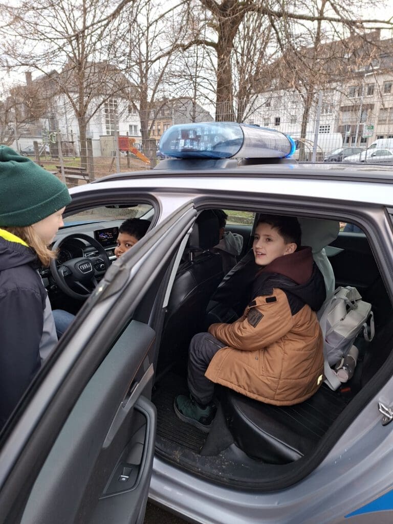 Ein besonderes Highlight war zum Abschluss das Polizeiauto, das die Kinder aus nächster Nähe anschauen konnten. Jeder durfte sogar einmal auf dem Fahrersitz Platz nehmen. Das war ein Erlebnis, das sicher niemand so schnell vergisst.