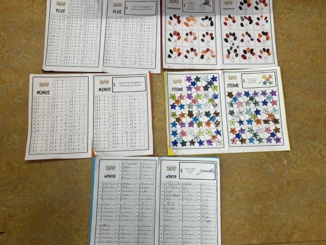 Am 19.2. hat die 1c eine besonderen Meilenstein erreicht: ✨100 Tage Schulkind ✨ Die Kinder haben die letzten Wochen sehr auf diesen Tag hingefiebert. Am Donnerstag hat dann eine kleine Challenge auf die Kinder gewartet: Zusammen 100 schreiben, 100 Plusaufgaben rechnen , 100 Minusaufgaben rechnen, 100 Sterne ausmalen 100, Fingerabdrücke stempeln