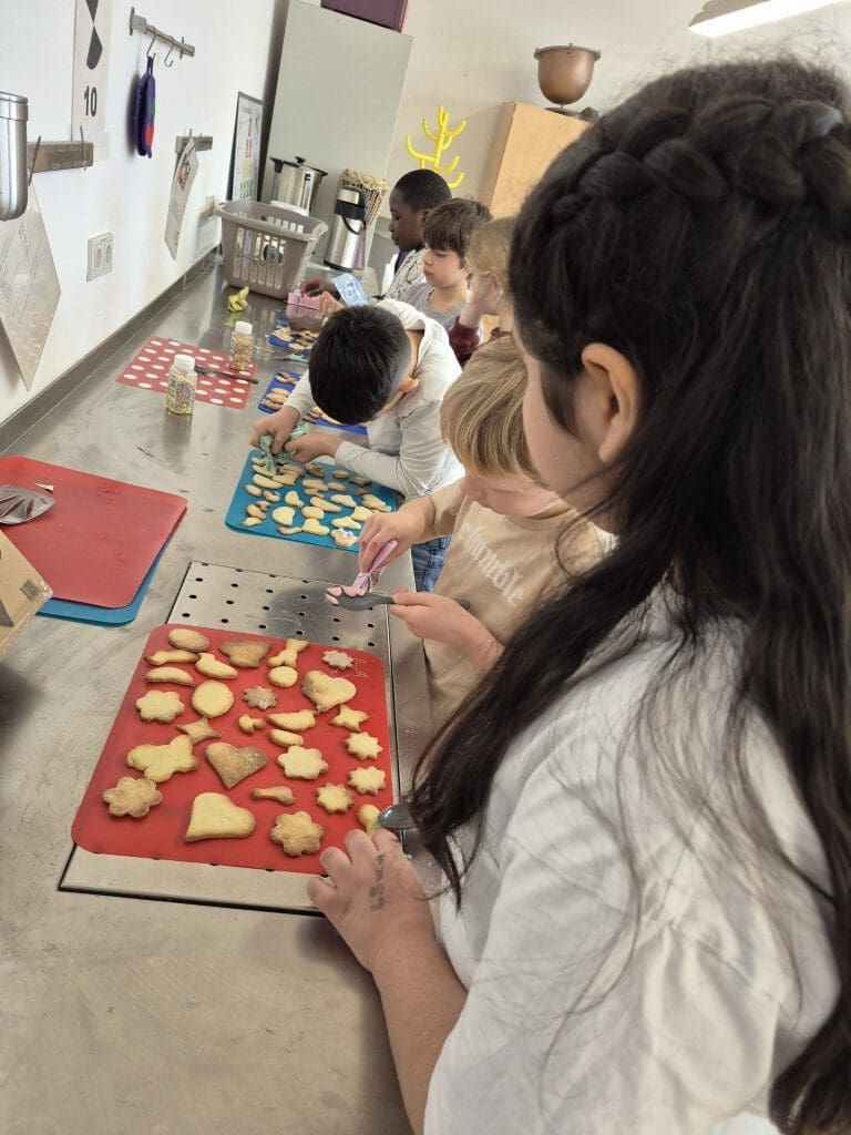 Nach dem Backen verzierten die Kinder ihre Plätzchen kreativ mit Zuckerguss und Streuseln. So entstanden viele bunte und leckere Kunstwerke.