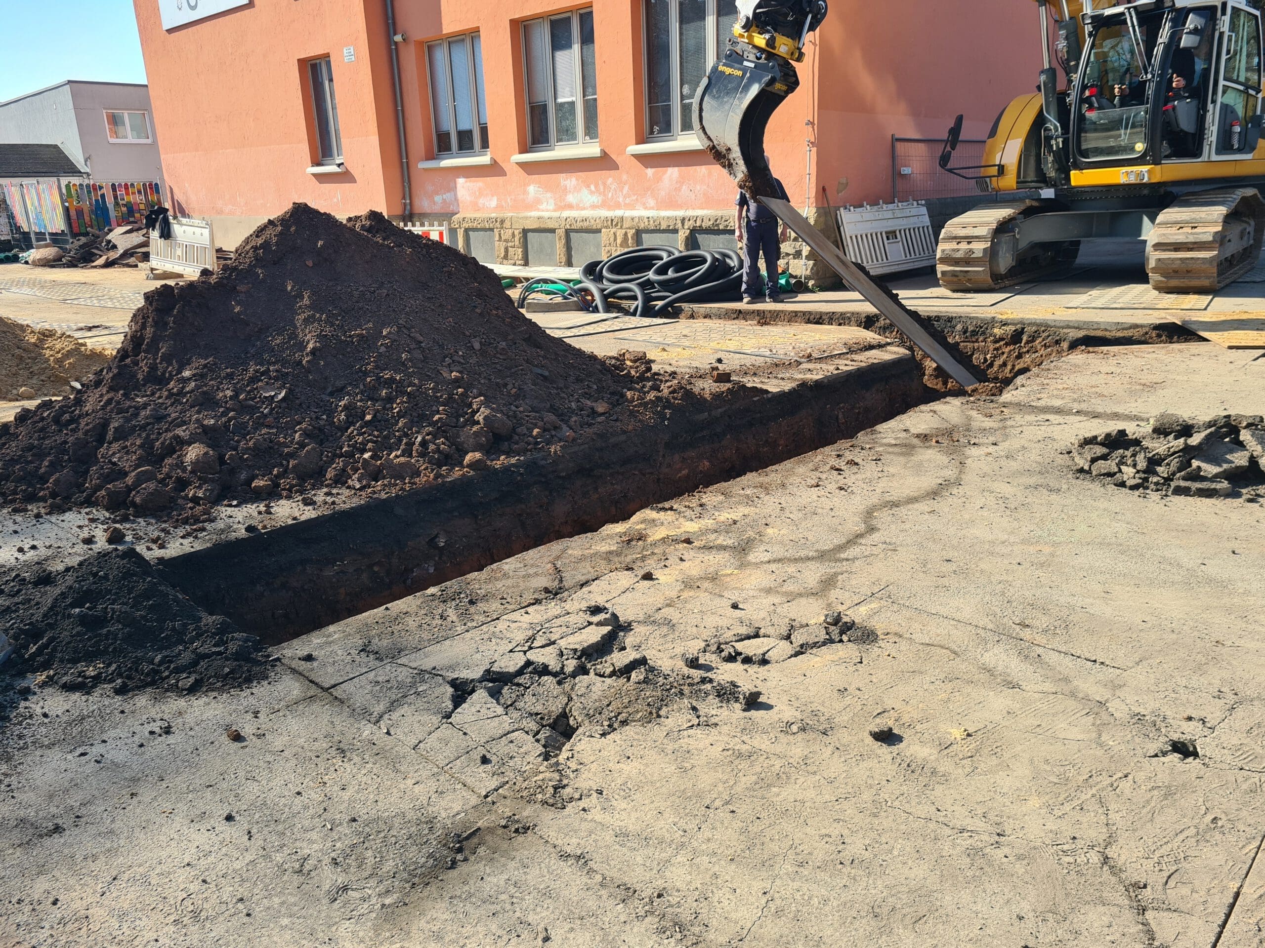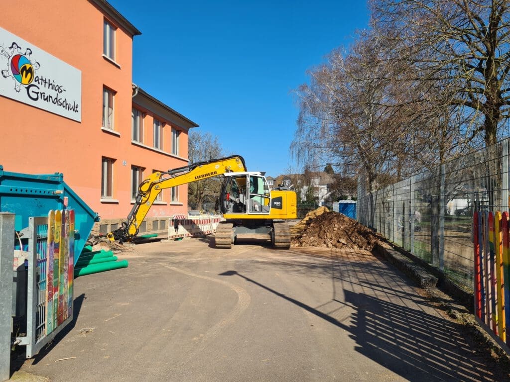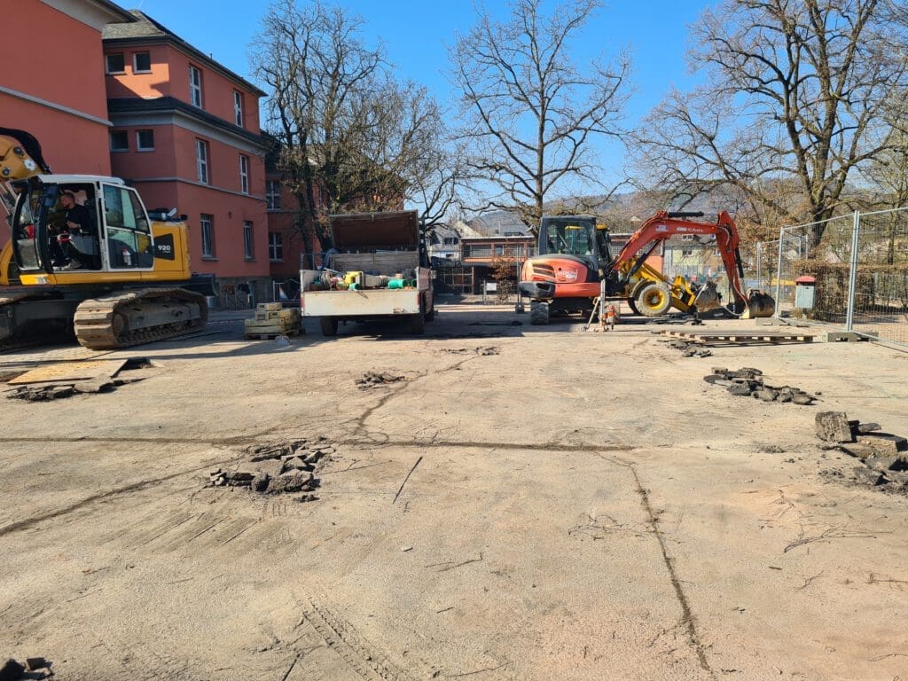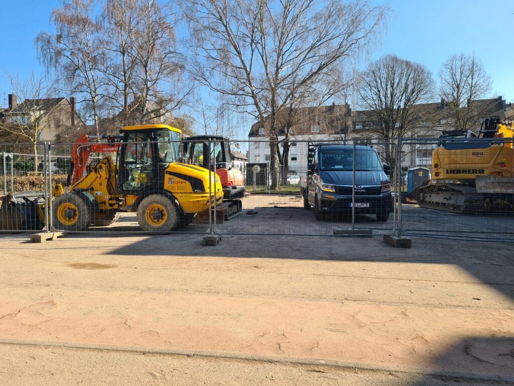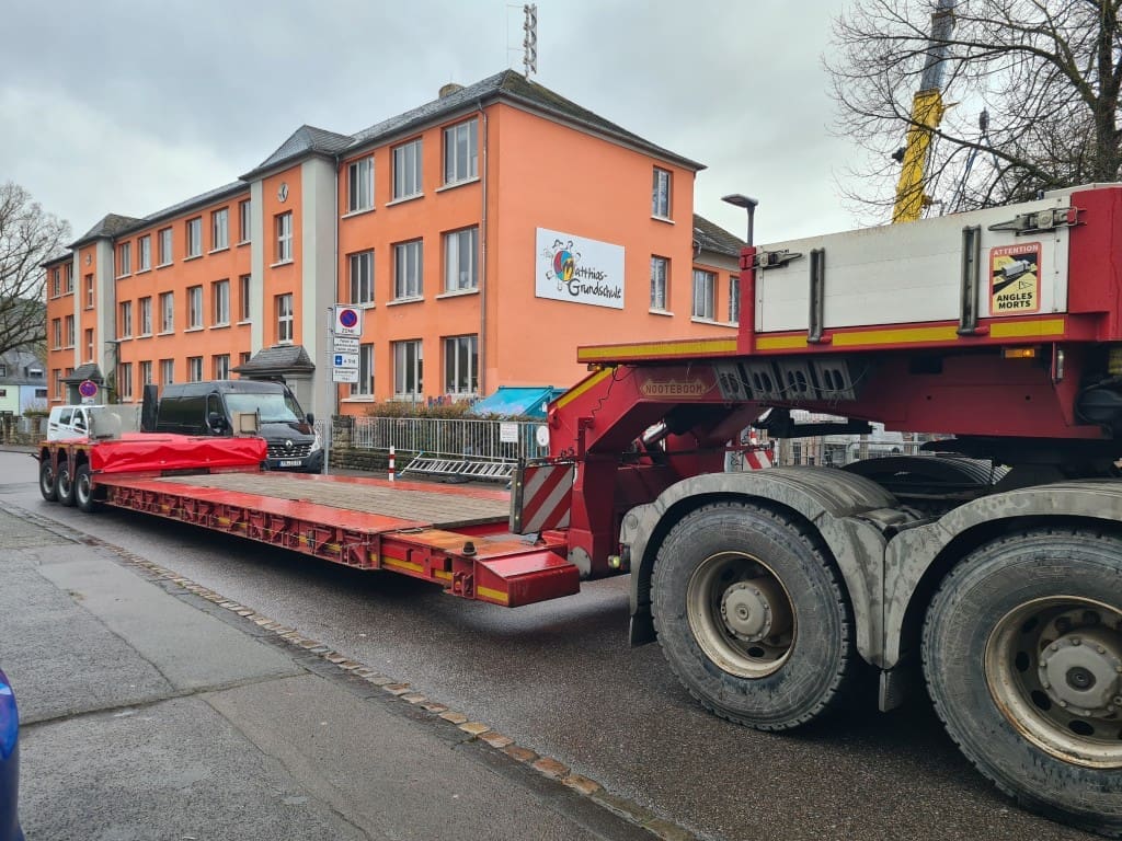 Schon vor den Ferien gab es Bauarbeiten auf dem oberen Schulhof. In den Osterferien sind jetzt die Module für unsere neue Mensa geliefert und installiert worden.