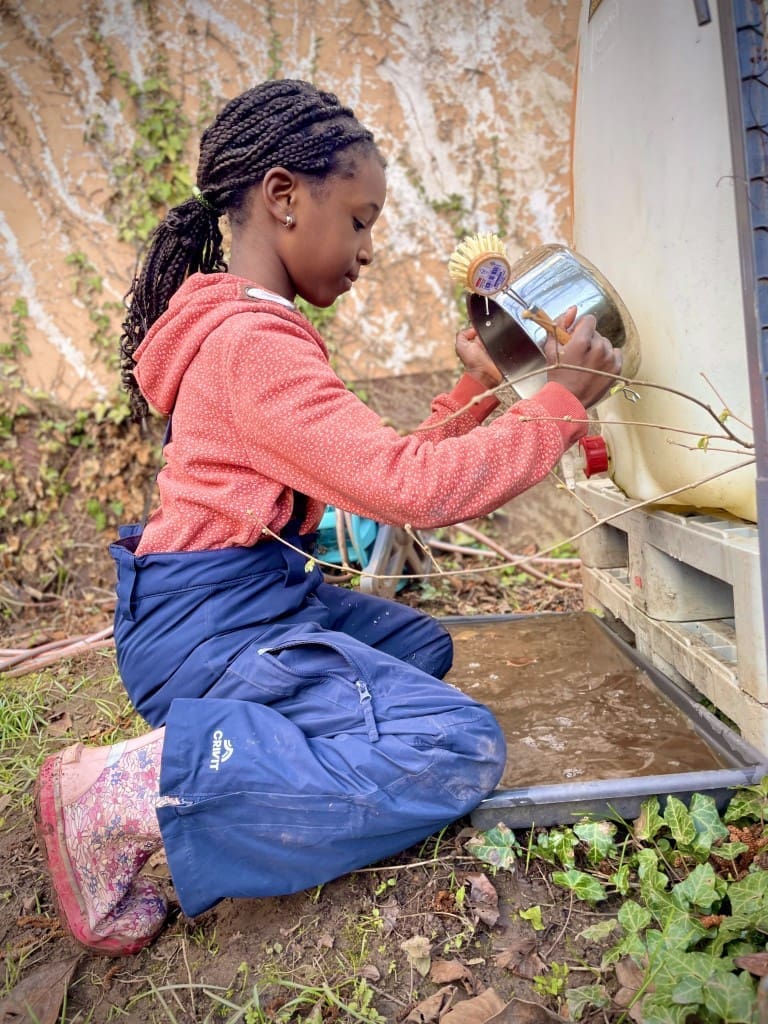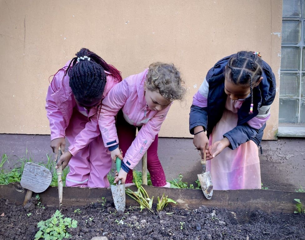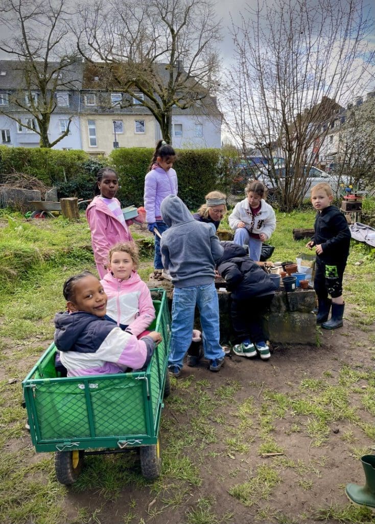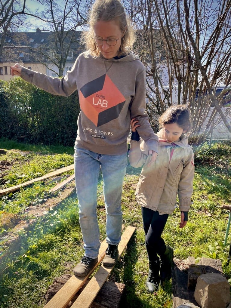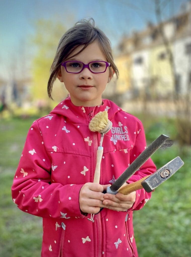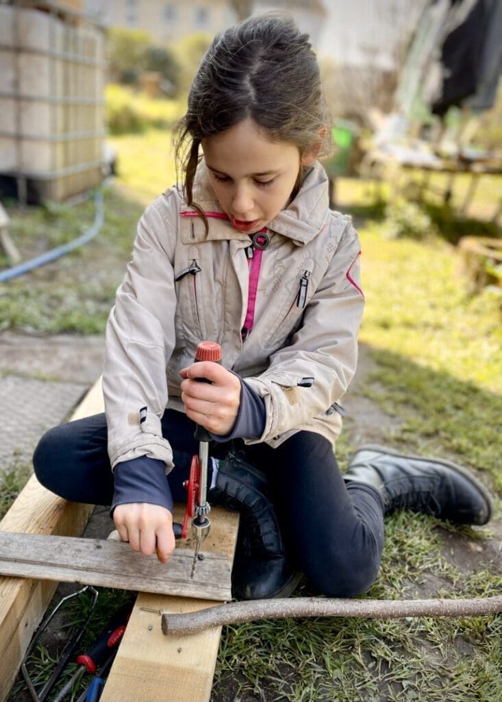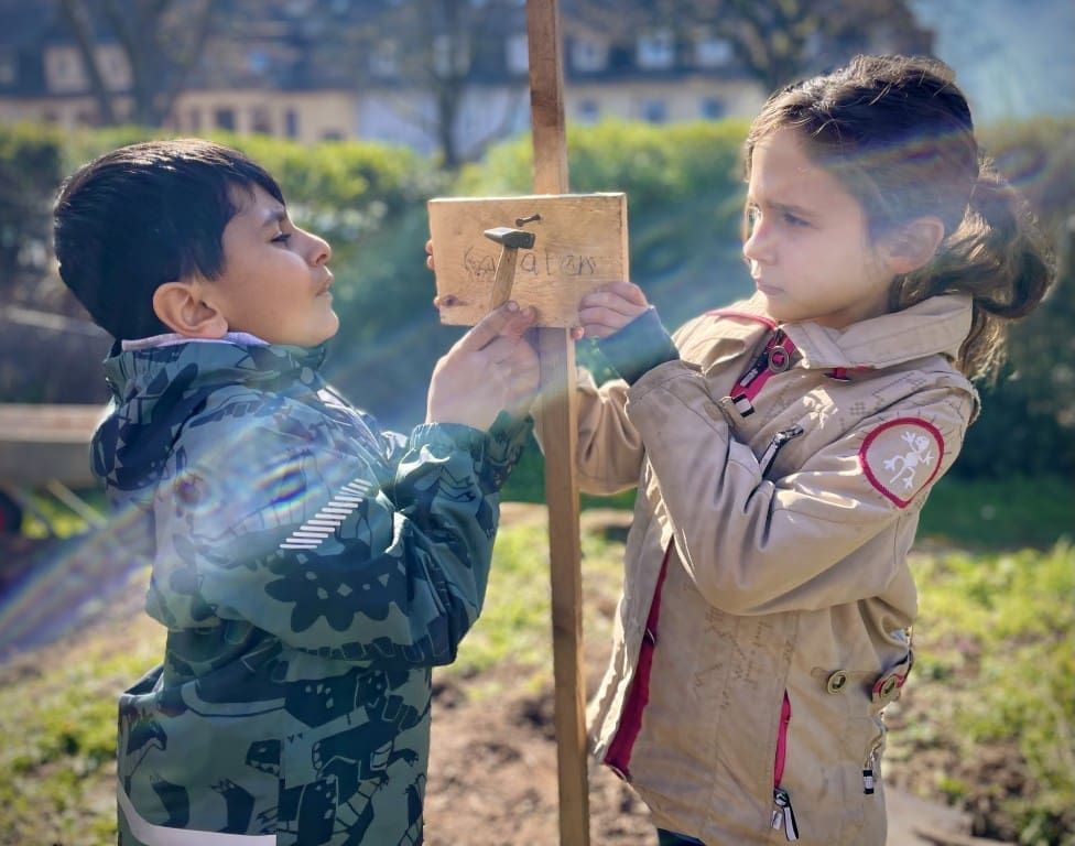 Heute sind wir besonders kreativ! Neben den üblichen Arbeiten, die im Garten so anfallen, gestalten die Kinder Schilder und wir beginnen mit den ersten größeren Bauprojekten. Und auch das im Matsch und Schlamm buddeln kommt nicht zu kurz!