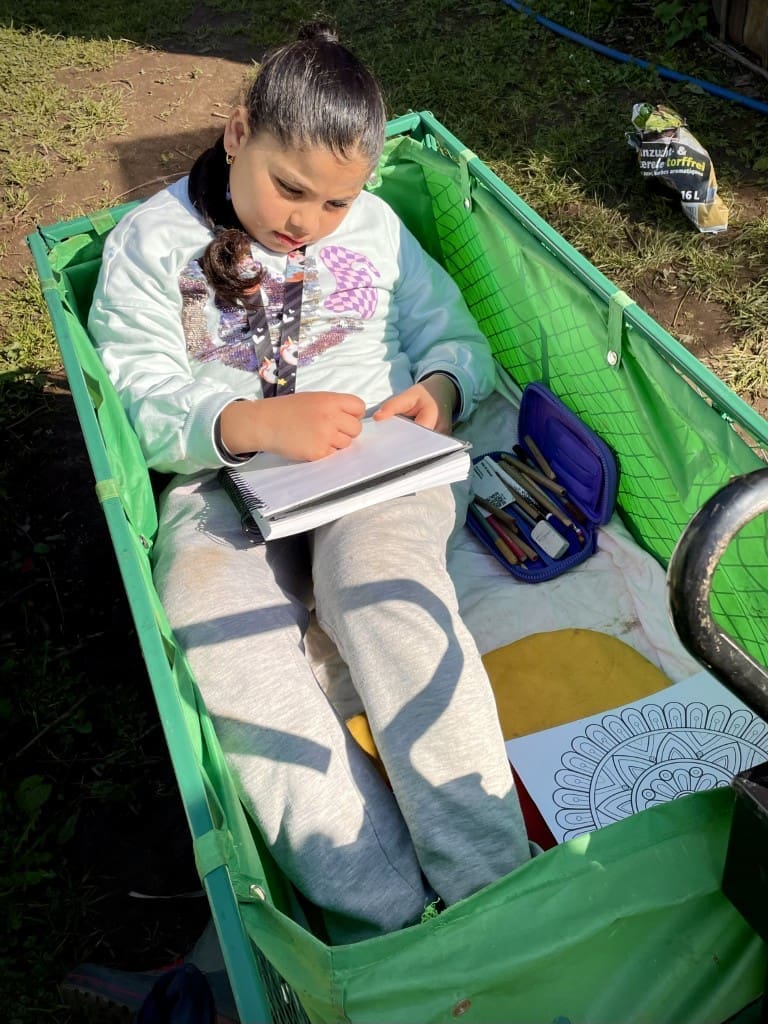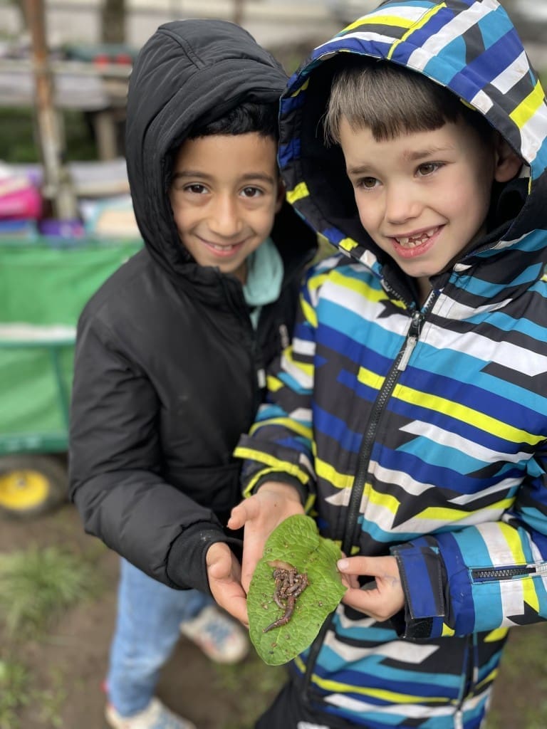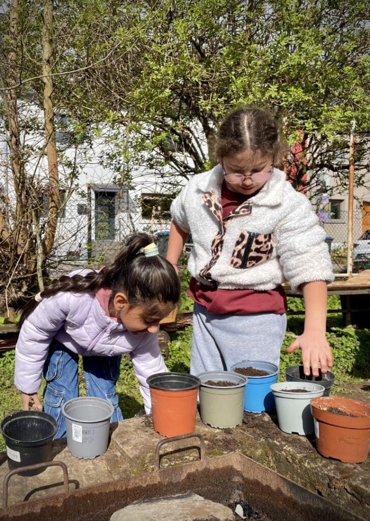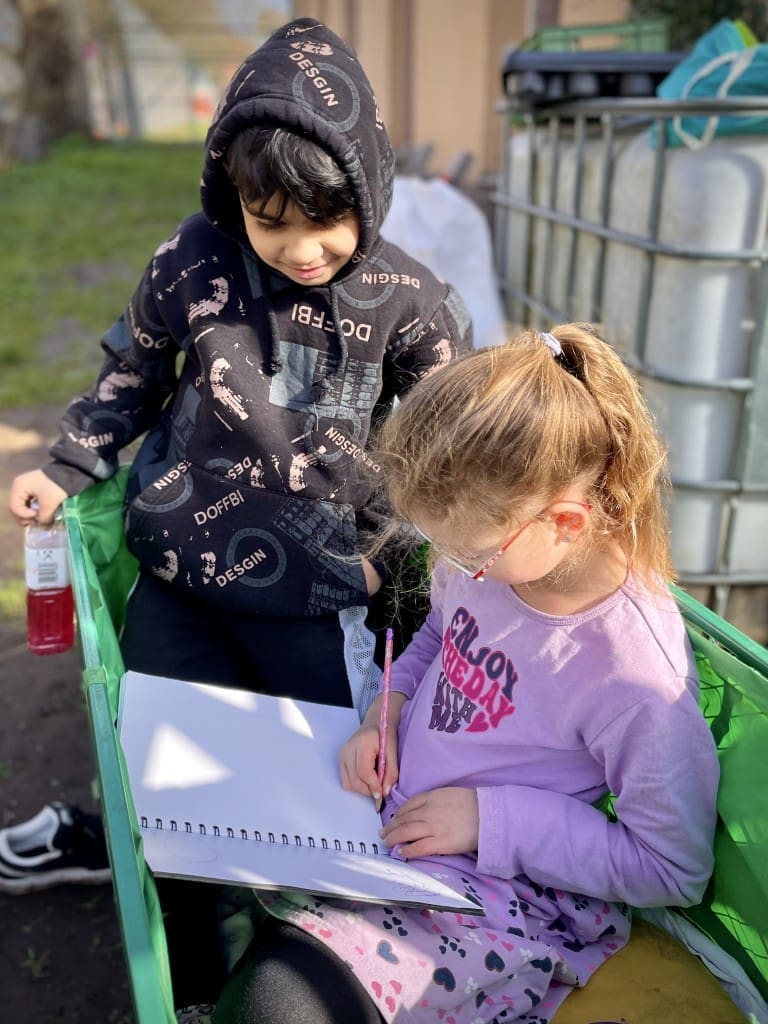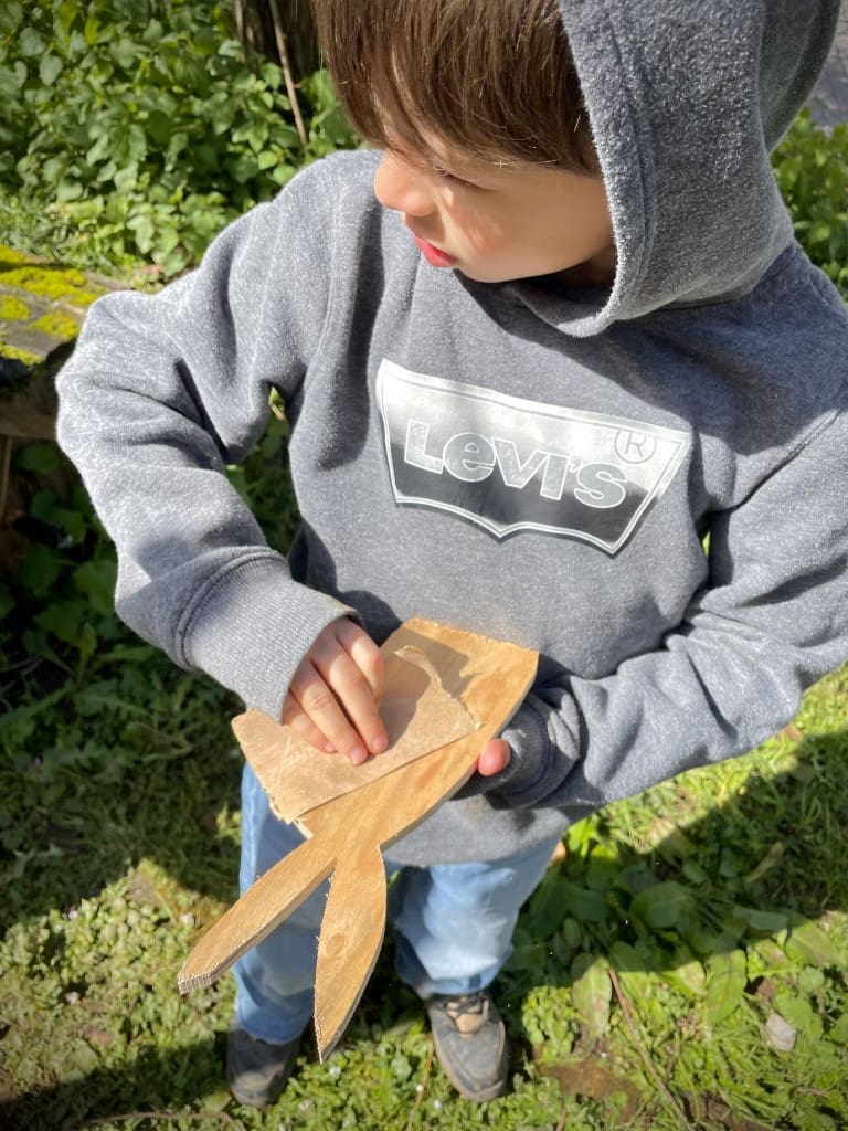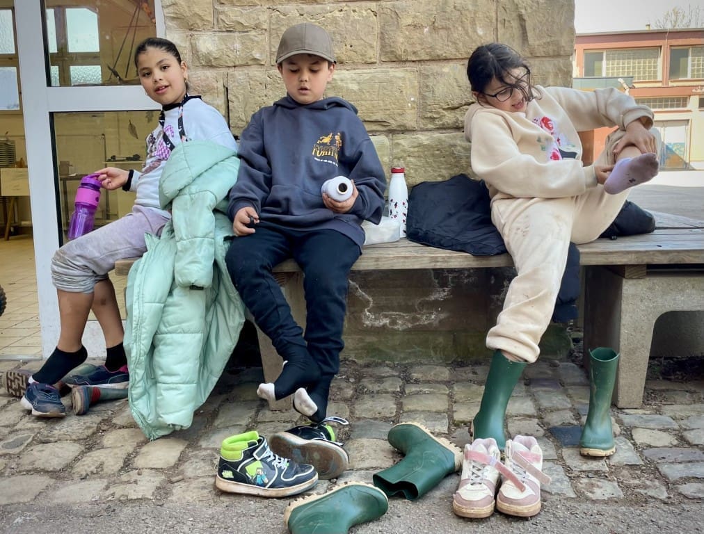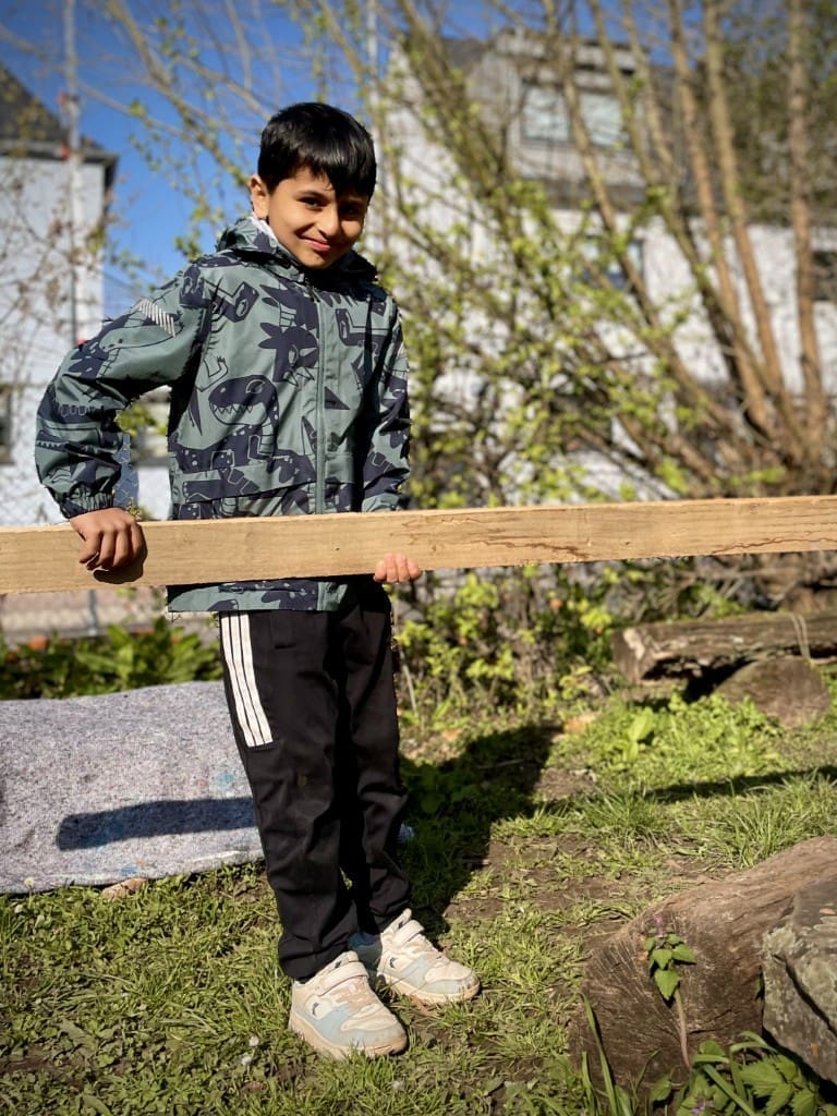 Heute sind wir besonders kreativ! Neben den üblichen Arbeiten, die im Garten so anfallen, gestalten die Kinder Schilder und wir beginnen mit den ersten größeren Bauprojekten. Und auch das im Matsch und Schlamm buddeln kommt nicht zu kurz!