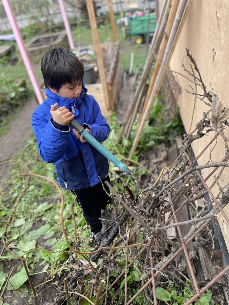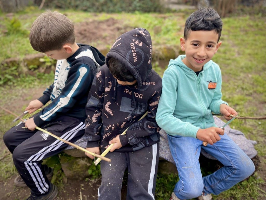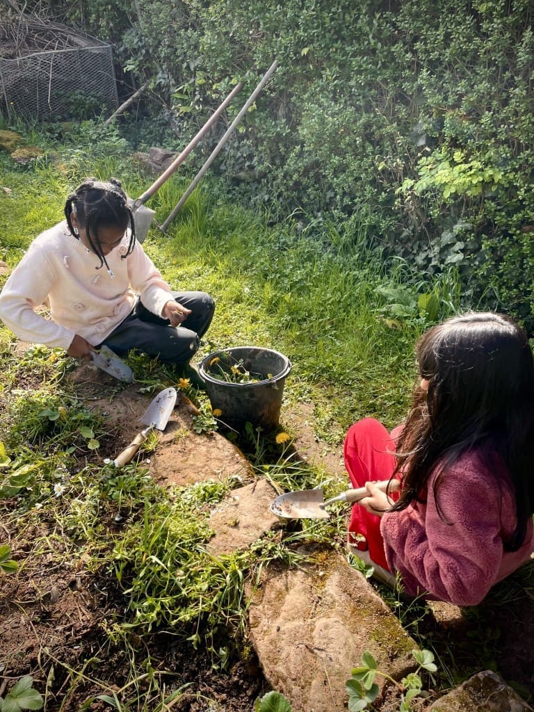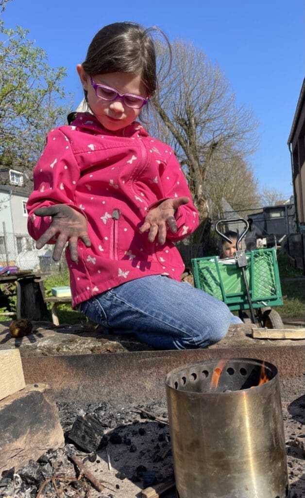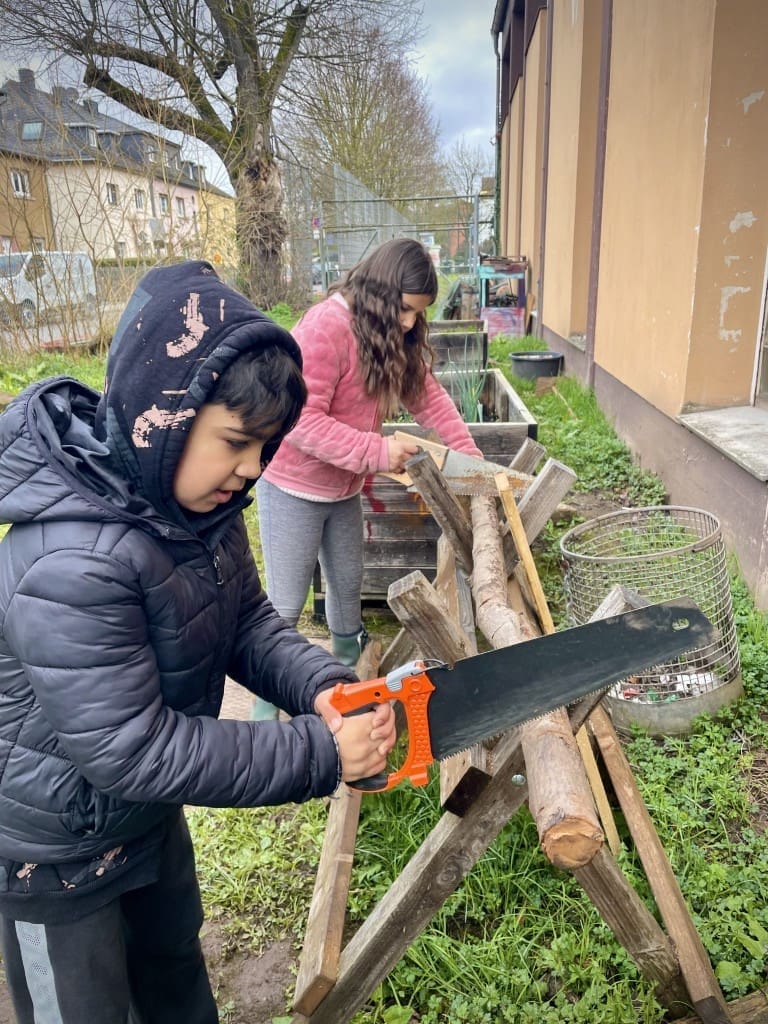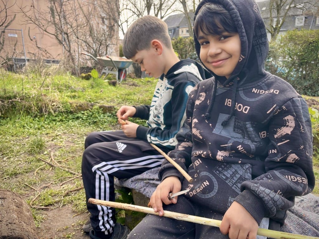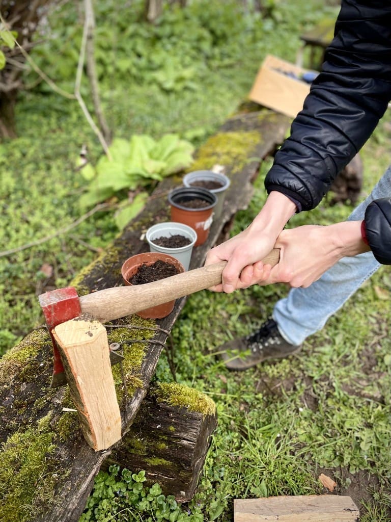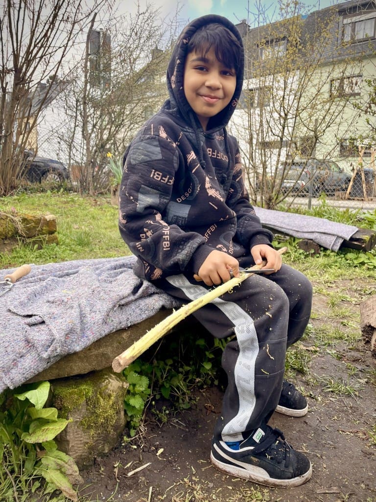 Das Wetter lädt endlich wieder zum draußen sein ein! Es wird geschnitzt, gesägt und gebuddelt, erste Jungpflanzen kommen in die Erde, wir legen die Kräuterspirale frei und natürlich gibt es wieder Leckeres aus der Feuerküche!