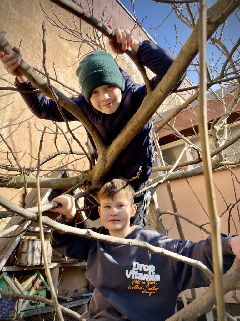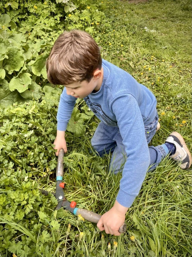 Das Wetter meint es heute besonders gut mit uns! Die ersten Kartoffeln wandern in die Erde und so langsam müssen wir uns auch um Pflegearbeiten wie Gießen, Jäten und Mähen kümmern bevor sich der Garten in einen undurchdringlichen Dschungel verwandelt 🙂 Besonders wichtig wie immer, das Klettern im Feigenbaum!