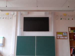 Mittlerweile hat sich unser Bestand an iPads und Laptops verdoppelt. Im Herbst 2021 hat die Stadt Trier die Voraussetzungen dafür geschaffen, dass alle Klassen über ein stabiles und schnelles WLAN verfügen. In einzelnen Etappen wurden alle Klassenräume mit großen Bildschirmen über der Tafel ausgestattet, mit denen man sich über eine Dokumentenkamera, einen Laptop oder über AppleTV verbinden kann.